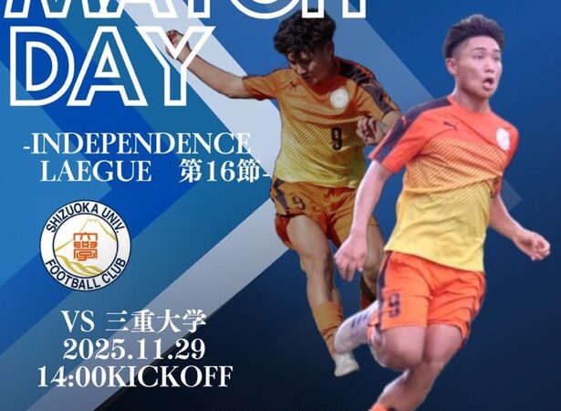 11/29(日) vs三重大学 @静岡大学G 14:00 kickoff [選手コメント] 石川翔悟(1年) 「Iリーグ最終節を勝利で終われるよう頑張ります! 応援よろしくお願いします!」 チームとしての底力を発揮し、I…